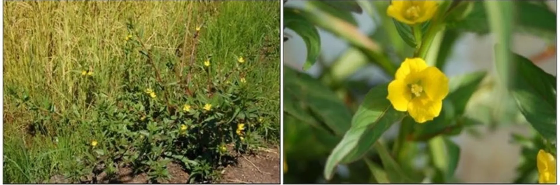 To distinguish from common primrose, the WPW has 4 petals (see above photo) and the common primrose has 5 petals. Both are yellow in color. The winged primrose stem has wings on the stem (see below) in cross-section.