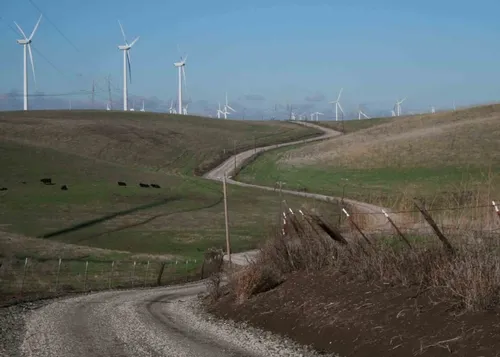 Last week I visited one of my favorite experimental sites: the SMUD wind farm in the Montezuma Hills, at the south edge of Solano County. The site overlooks the Sacramento River where it’s a half-mile wide. If you tripped over the back end of Plot #60 and rolled down the hill into the river and floated down through the delta for twenty miles, you’d get to Benicia and the Ghost Fleet.