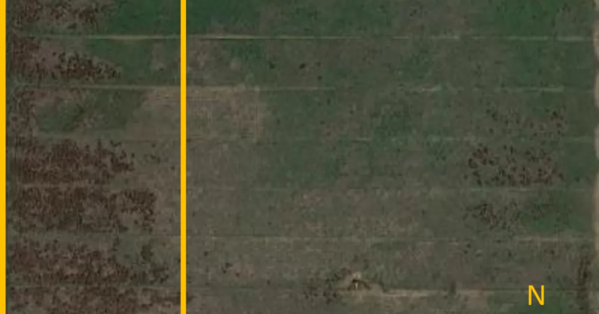 Image 3: Many irrigated pastures exhibit similar dark clusters on Google Maps. This unrelated property also seems to support rushes on the west end and in their southern checks. They may benefit from reevaluating their irrigation, too!