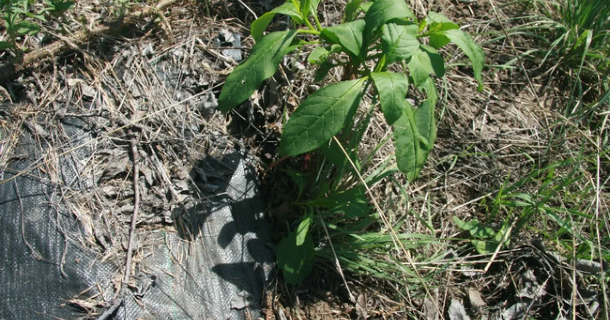Tarps or fabrics have been used by growers to suppress pokeweed as well; however, once the weed is already established, pokeweed has shown a strong capability to overcome and regrow from those strategies (Figure 2).