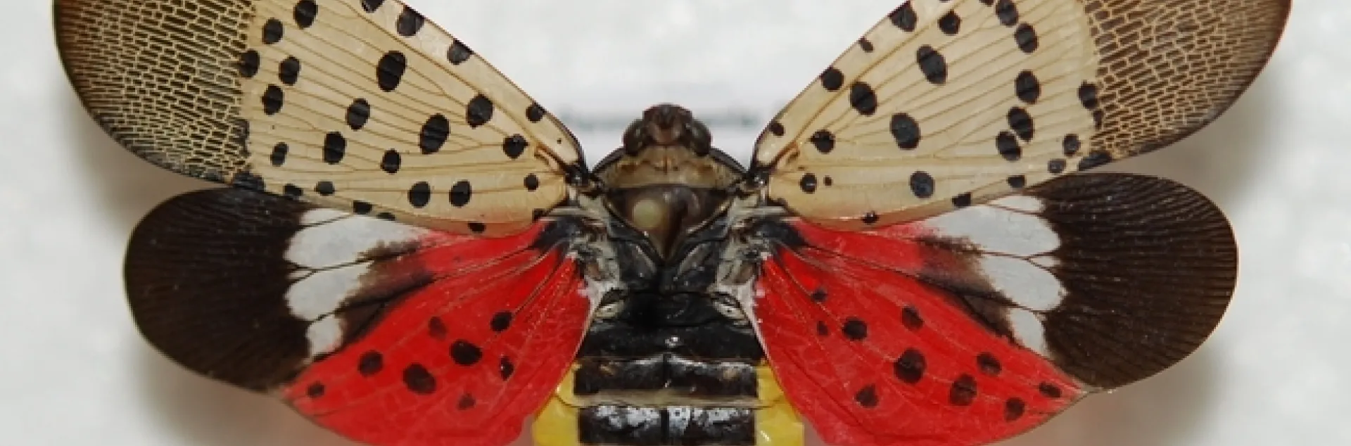 The spotted lanternfly (SLF) is a new invasive pest that has recently arrived in the United States. This planthopper has a wide host range of 70+ plant species including grapevines, apple, cherries, stone fruits, ornamentals, etc… with its preferred host being the tree of heaven. SLF lays their eggs on inanimate objects such as railway cars, outdoor furniture, stones, wood pallets, and vehicles which aids in their ability for wide dispersal.