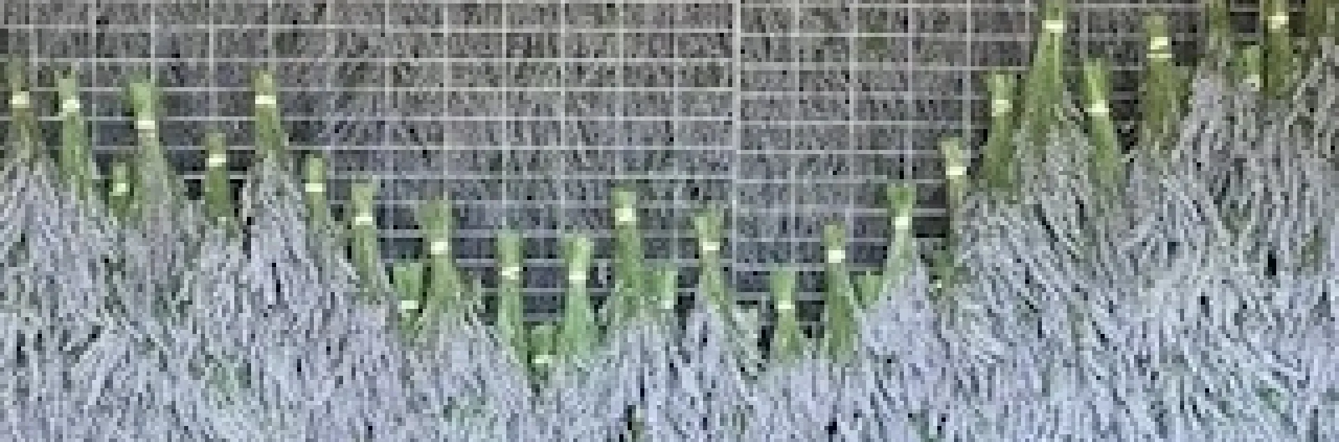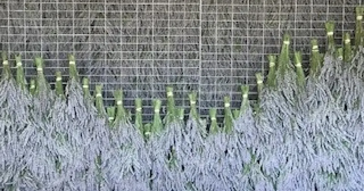 On to the drying racks, where bundles of lavender are hung to dry naturally. An enclosed building with several racks (see photo) is perfect for this purpose. The harvested lavender is tied into bundles and hung upside down to air dry. Once the lavender is completely dry, it is ready for debudding. So our next stop was to see the Besel Lavender Machine, the debudder, in action. The stalks of lavender are fed into the top of the machine, where rotary brushes begin the task of removing the buds from the stalks. They then go through sifters driven by micro vibrators, and finally, a centrifuge vacuum system that removes any impurities and dust. The finished product is a container of clean lavender buds, and a separate container of stalks and dirt. We were told you can accomplish the task by rubbing the lavender stalks in a closed pillowcase, which I tried at home with pretty good, albeit messy, success.