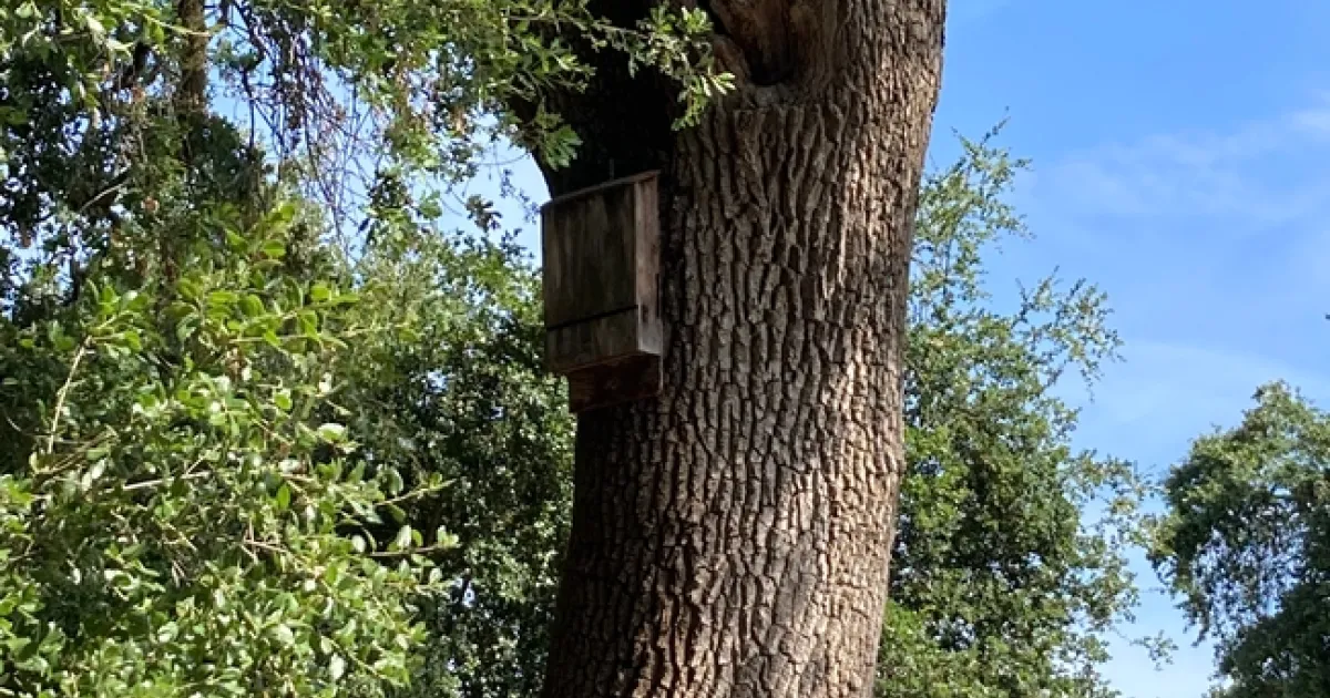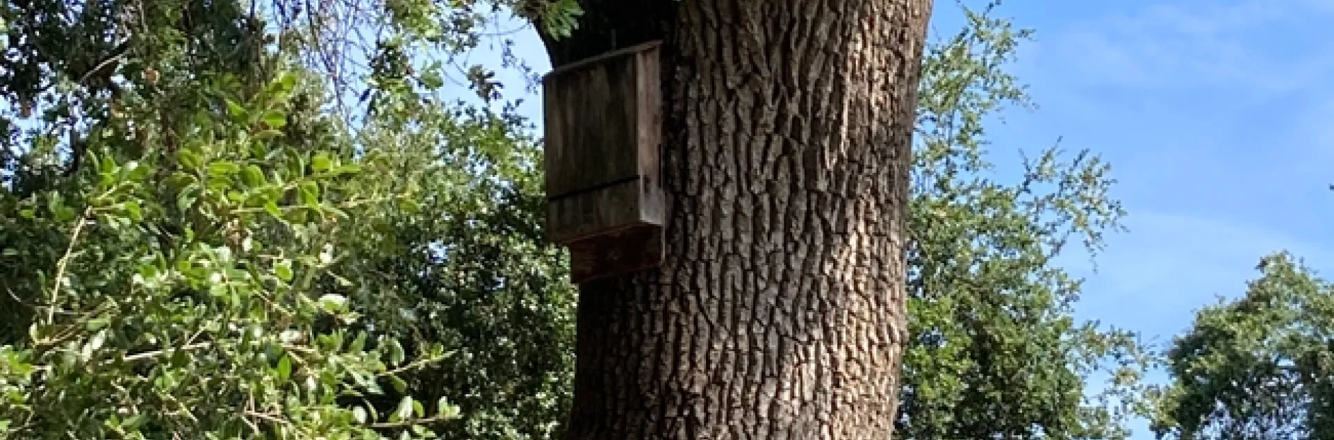 If you want to try to attract bats to your vegetation, the ideal bat house is made of rot-resistant, non-pressure-treated wood like white oak or cedar with 4 chambers inside, painted with oil-free, dark-colored paint on the inside, well-caulked on the outside to stop drafts and mounted 10-20 feet off the ground, ideally away from trees to keep predators out. The boards for the chambers should be roughened up first. This allows the bats to climb from the bottom of the house upward. Poles or buildings are better options for mounting. The bat house needs to get at least 6 hours of direct sun exposure every day to keep the young warm. (The sun-blasted asphalt on the Yolo Causeway is what keeps the bat babies incubated in the expansion joints under the bridge.) A water-source less than 200 feet from the bat house is preferred, but it doesn't have to be a lake or even a pond. A cattle trough filled with water will do. If you have ever hiked at Lagoon Valley near dusk during the summer, you might have seen bats zooming and dipping over the troughs on the hills grabbing a quick drink.