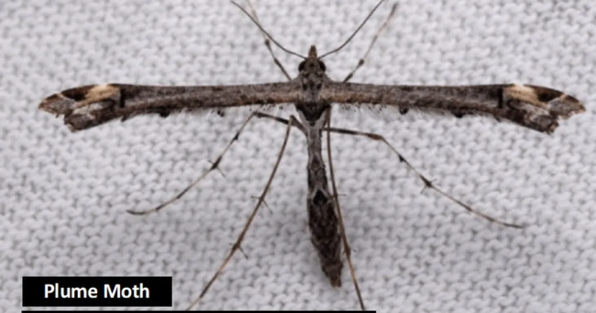 This moth is most active at night and are attracted to porch lights. In the morning, it common to see them resting on the sides of buildings. During the day, plume moths prefer to rest on nonwoody plants or flowers. They are most commonly seen spring through fall, during the warm months.