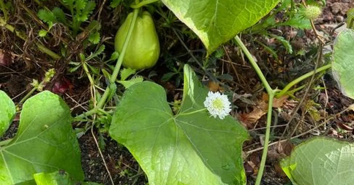 I researched how to plant thechayote fruit and its need for full sun and regular water.  I set the fruit about 4 to 6 inches deep in the soil and at a 45-degree angle so that the stem was level or slightly above the soil surface and the big end was deeper.  I was not able to follow the recommendations for the planting season because the fruit was sprouting and ready to plant right away.  The fruit takes 120-150 days until harvest and is ready when it is slightly tender.  Because I have a small yard, I planted the fruit in a container with a trellis that would in no way contain or control a 50-foot vine.  But it was all I had!