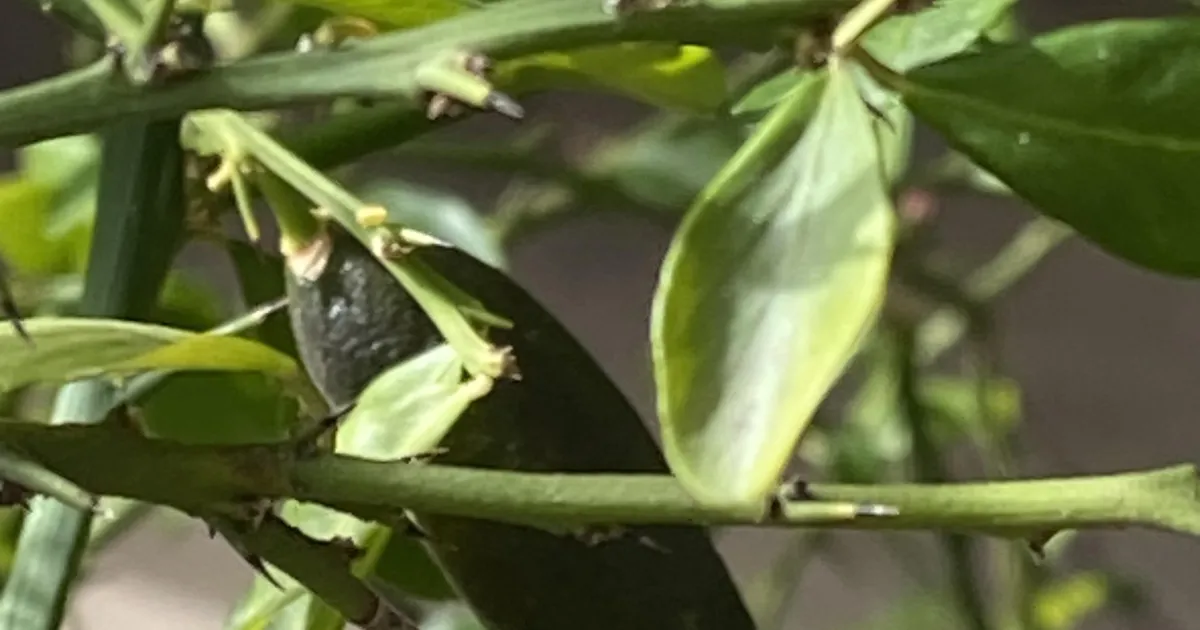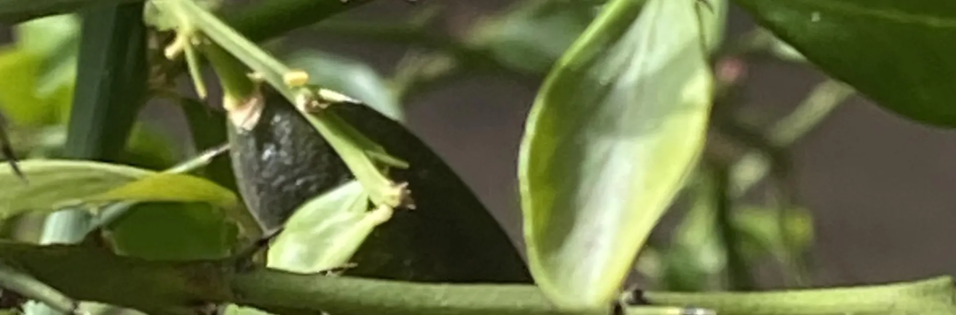 Finger Limes prefer a minimum of 6-8 hours of sun per day, and some protection from the hottest times of the day may be appreciated. Plant in well-draining soil, regular and consistent watering, but not over-watering, as they are susceptible to root rot. Protect finger limes from temperatures below 32 degrees. They are self-fertile, therefore don’t require wind or bugs for pollination. I prefer to trim my Finger Lime to reduce to a more manageable size and shape. Mine is in a half-barrel and will grow to 6-8 feet. If they are planted in the ground, they may reach 12 plus feet. BEWARE when trimming or picking the fruit, they have numerous thorns on their branches! Finger Limes, like all Citrus, are susceptible to scale, aphids, mealybugs, and ACP. Keep a close eye out for these problems, especially Asian Citrus Psyllid.