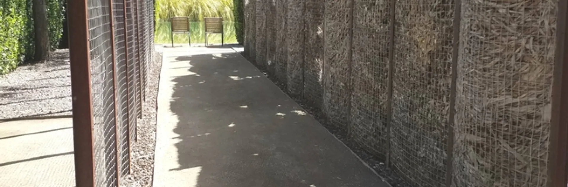 Rise is the name of a garden that has a huge walk-thru culvert. Through this culvert you see a vineyard and the hills in the background, you can hear your voice echo as you are walking inside the culvert. “Rise” is surrounds by a variety of shrubs in a shades of green.