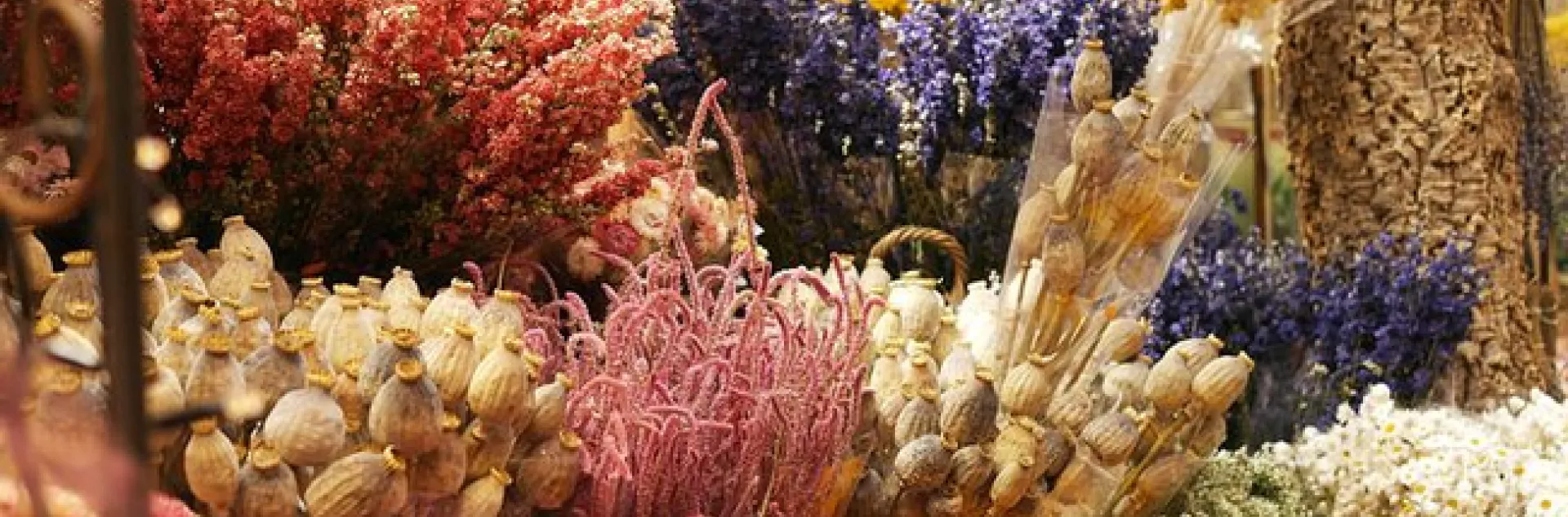 • Flowers - roses, hydrangea, baby's breath, globe thistle, corn flower, sun flower, dahlia, daisy, carnation.