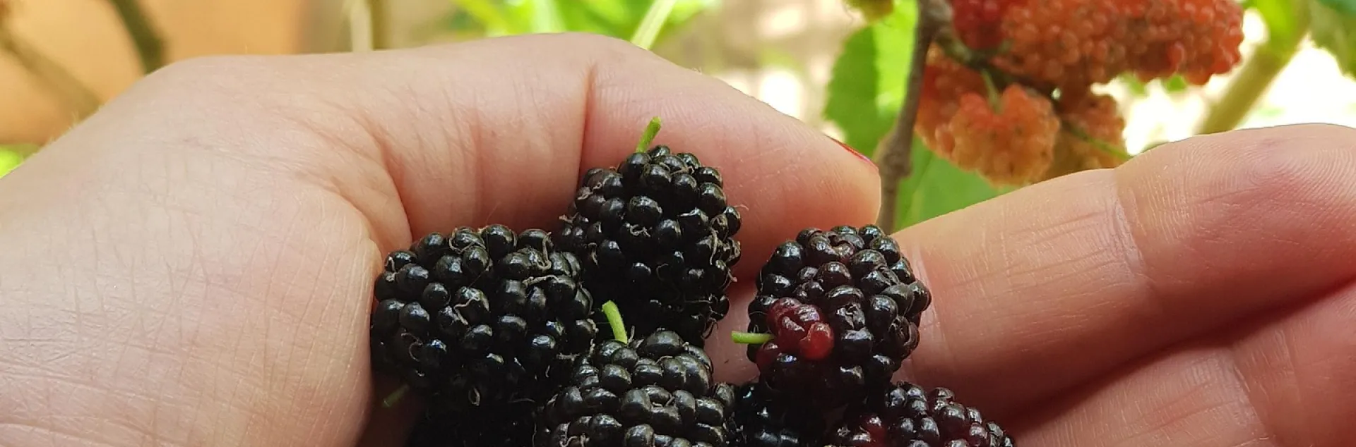 Last summer, after tasting my friend and fellow Master Gardener Stephanie's delicious mulberries, I ordered a dwarf everbearing mulberry, Morus nigra from Stark Brothers online. Stephanie's mulberry is in a relatively small pot, healthy, compact, and covered in berries.