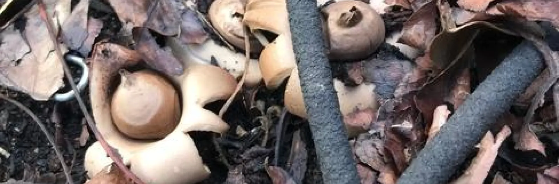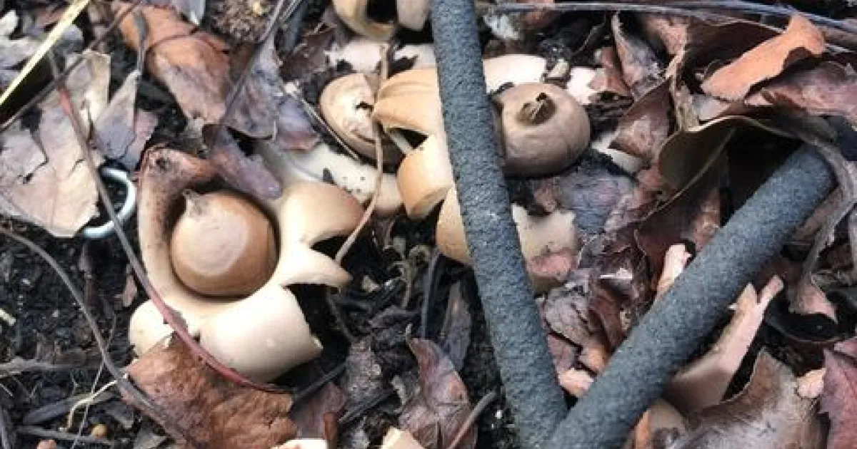 The beginning of November I noticed something strange in my raised garden bed. At first, I thought perhaps it was an odd leaf blown in or a dried pod carried in by a bird or squirrel. But I had never seen anything quite like it. I cautiously touched it. The outer petal like structures felt rubbery. When I touched the center portion of the object, a puff of a dark smoke-like substance came out of the top.