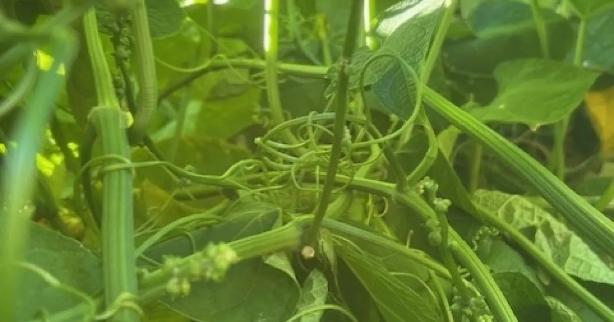 • At the Vallejo Peoples Garden we cut back the vine close to the ground after fruiting leaving only a few good stalks. We mulch heavily around the plant to conserve moisture. Where the ground freezes, the root tubers can be dug up and stored for replanting in the springtime.