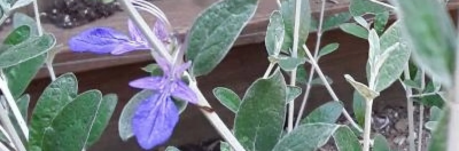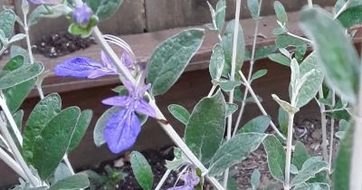 The bees really love this plant, one very good thing is its disease and insect resistance. I have not seen any of these problems since I have grown this plant. It has silvery foliage underneath the leaves with small blue flowers that bloom from early spring until very late fall. You can train it into a hedge, use it as a background plant, or as I am going to let it do its own thing. It is in a spot where can spread out the 3-4 feet as the information on it says it can. If it does get out of control it can be pruned back.