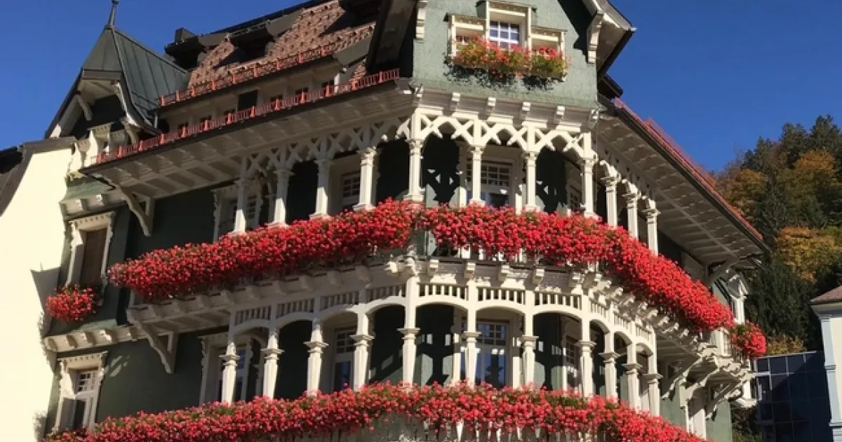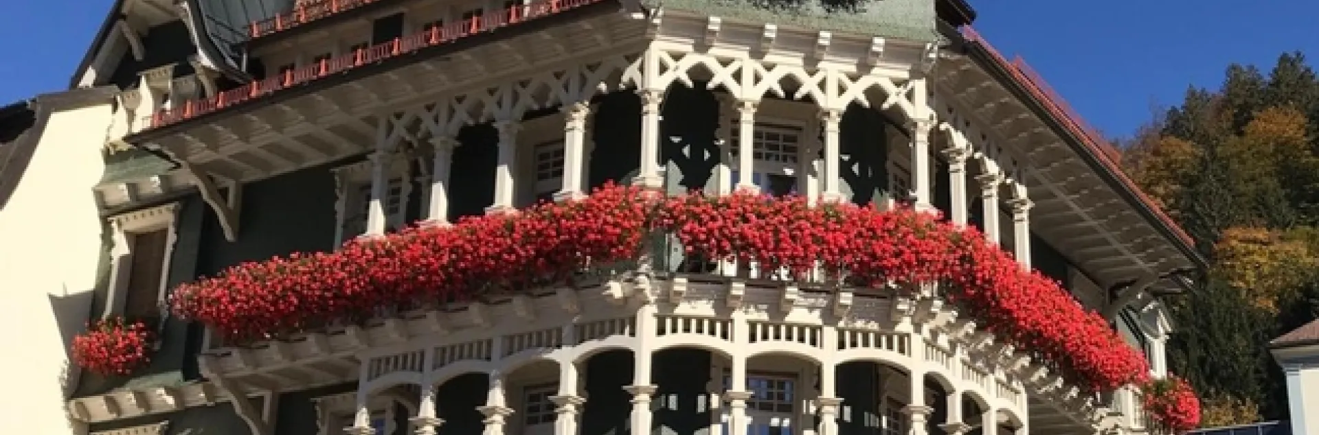 The Black Forest wasn't very black as the deciduous trees were aflame in fall colors. I imagine later with all those beautiful leaves gone, the remaining conifers could look black indeed under a leaden winter sky. In the town of St Blasien, we saw a lovely building covered with flowerboxes all overflowing with geraniums. Geraniums seemed to be the popular choice for many flowerboxes in Germany. I can understand why, beautiful, tough and easy to care for.