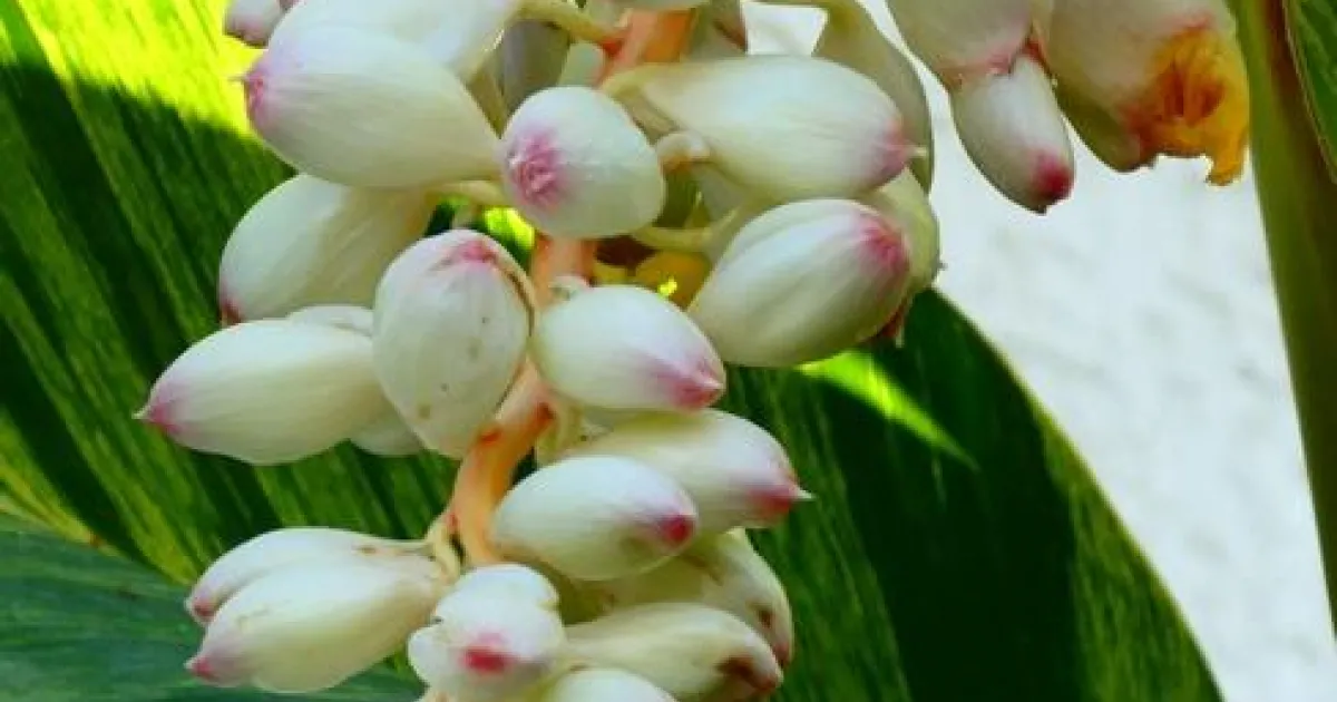 Alpinia zerumbet ‘Variegata' is the name of the intriguing ginger thriving to this day in my backyard. Some call this variety “shell ginger” for its strands of flowers that look like tiny seashells strung together. Each year when the weather warms, I stand in awe at the gorgeous fragrant display. Also labeled a “variegated ginger,” its leaves live up to that moniker, each leaf unique with an unpredictable pattern from stripes to splotches of green, white and yellow. The leaves alone are an attractive addition, especially to a fall or winter garden. Although the stalks can be susceptible to a frost or freeze, don't despair and toss out the “died back” clump. By spring you'll notice new shoots popping up once again. For me, it's all part of the intrigue.