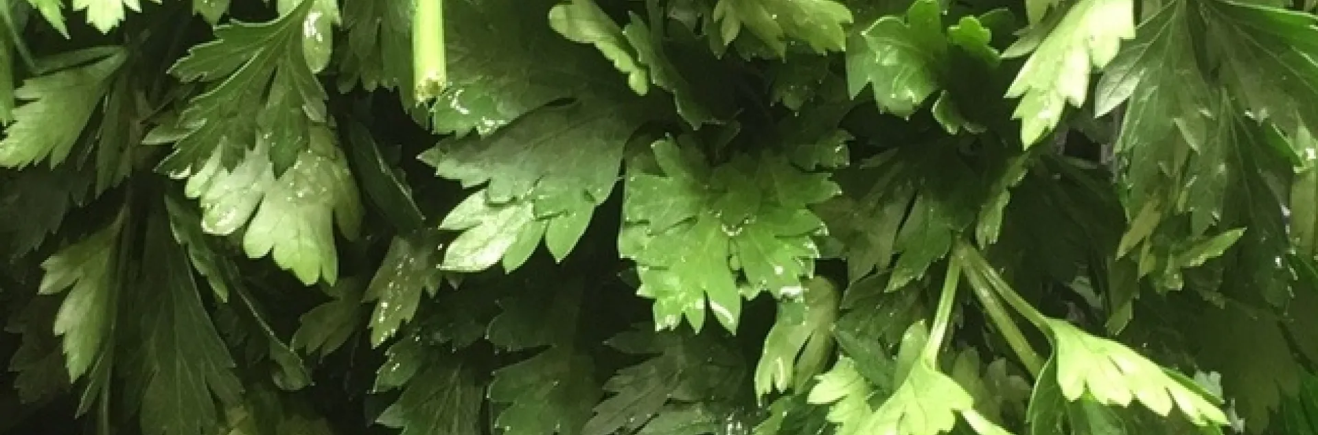 Have you ever stood in front of the fresh herbs at the grocery store trying to figure out which bunch of green leaves is the flat leaf parsley and which is the cilantro? Without tasting a leaf or smashing your nose into the bunch for a good sniff, it's pretty difficult. Look closely at the leaves. If the leaves are pointy on the ends, it's parsley. If the leaves are rounded, it's cilantro.