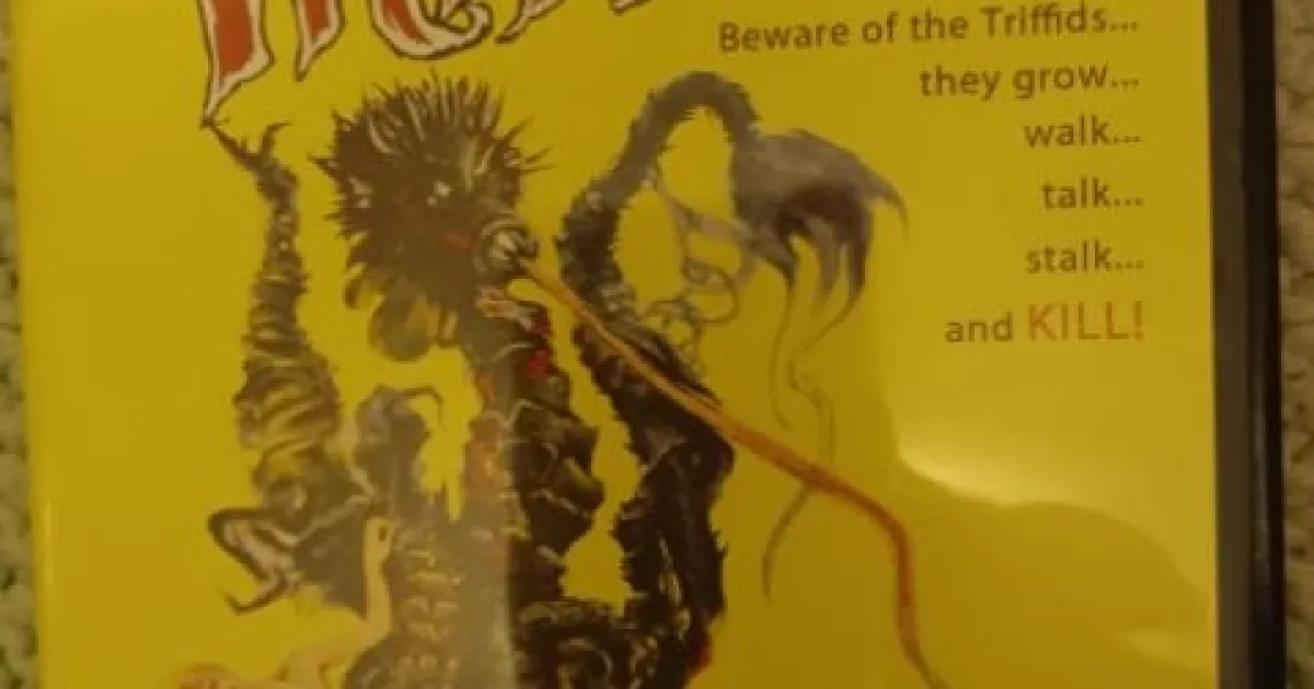 Starring Howard Keel (yes, the Howard Keel that starred in the musicals Showboat and Kiss Me Kate) as Mason, a sailor who is one of a few people on the planet who can still see, this is my favorite killer plant movie. A once in a lifetime spectacular meteor storm ends up blinding everyone who saw it. Mason was in a London hospital the night of the meteor shower with his eyes bandaged as he recovered from eye surgery and missed seeing the meteor shower. He teams up with a young orphaned school girl named Susan who was stowed away on a train the night of the meteor shower, and thus can also see. What we learn is that the meteor shower also brought with it billions of triffid seeds. Trifids are fast- growing carnivorous tall, upright plants that can spew poison. They can also uproot themselves and move about in search of prey.