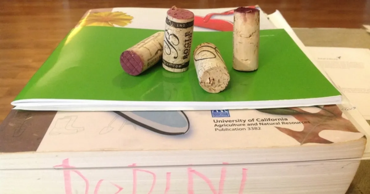 One day my daughter texted me from work because one of her regular customers asked for some corks that could not be sold for whatever reason. She said he was going to put them in his garden to help with water retention. She was curious about why. (My daughter works in the part of the wine industry that we appreciate briefly and then get to the good stuff -- the company puts the logo on the corks for many of the wineries that we enjoy in the Napa area.) Anyway, I was intrigued because it was so hot and my hydrangeas had been suffering before I moved them. Water retention is a good thing, and I was spending a good deal of time on watering. And, I had a bunch of corks sitting in a bucket doing nothing, but I couldn't get myself to throw them away.