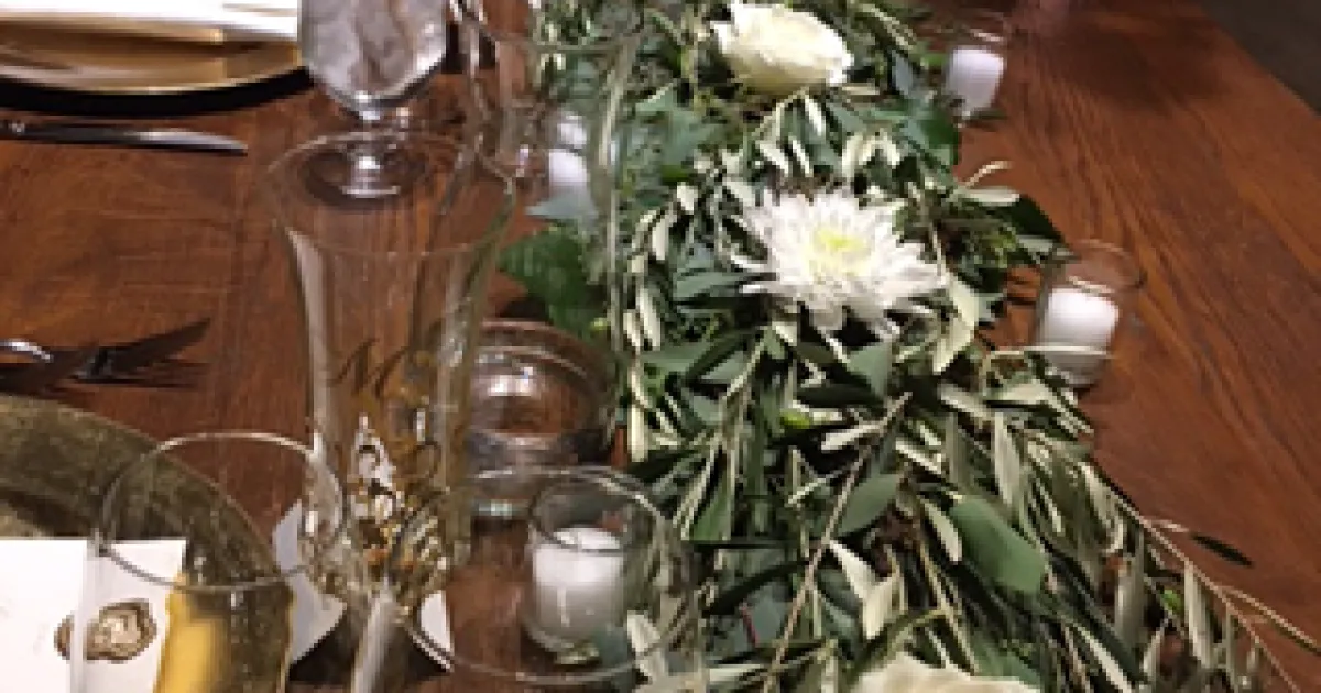 The Olea europeaea is a member of the Oleaceae family known as the common olive. It is a slow growing evergreen tree or shrub with a reflective soft gray foliage and is known for its beautiful gnarly trunk, also known for it is drupes which yield oil and marketed as table or pickled olives. It has been cultivated since prehistoric times in the eastern Mediterranean region and is associated with religion, medicinal and nutritional needs. Historically, it has been used medicinally for many ailments including diabetes, hypertension, and bacterial infections. Spain, Italy, and Greece are the main producers. It has become immensely popular in landscape design for its picturesque beauty and drought tolerant features. There are a few varieties available which are considered fruitless which is ideal. The olive branches have become extremely popular in the floral industry as well. They are used to represent peace, wisdom, fertility, and luck. I have been using the olive in a variety of uses but mostly in long table runners and personal bouquets. It is long lasting and offers a beautiful contrast to white flowers.