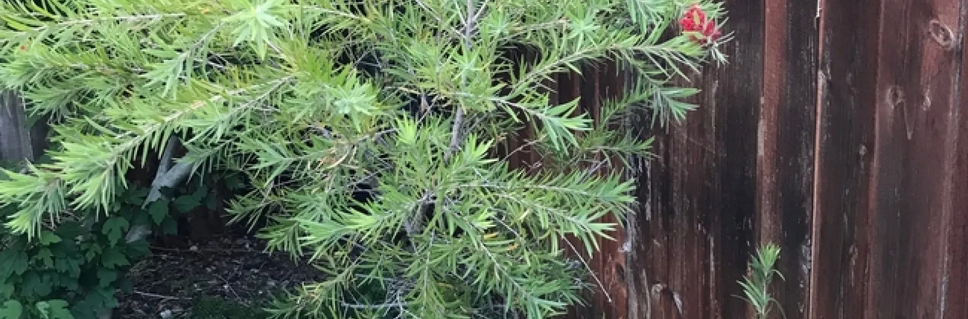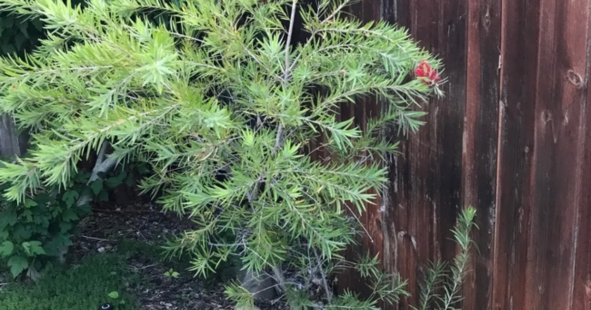 Once home I carefully sowed representatives from the seed sampler.  Some germinated and a few Kangaroo Paw even made it to the four-inch pot stage before dying.  My Bottle Brush survived.  It never quite thrived though and I moved its container from place to place in my yard over the years.  I finally put it in a half wine barrel and it even made it through the drought years.  I had read that it needed full sun and should bloom “freely”.  I brooded.