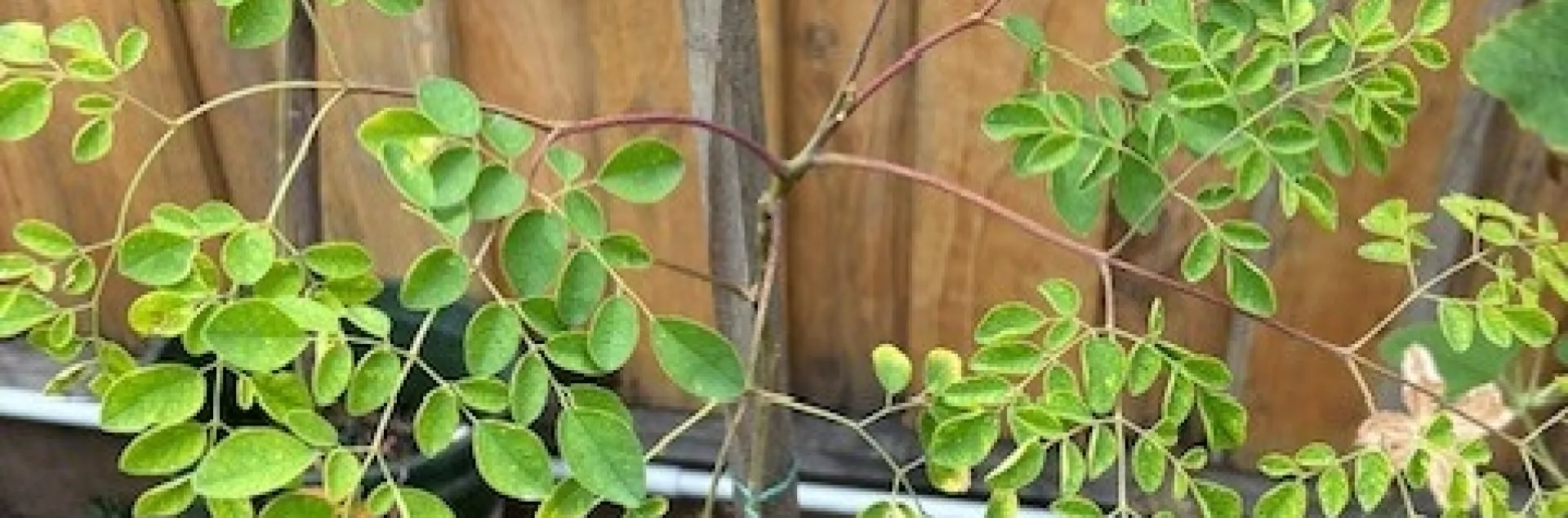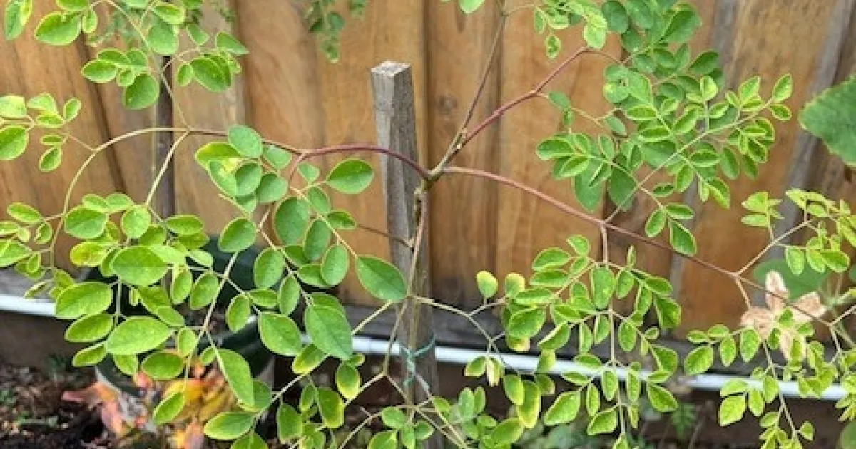 At the Vallejo People's Garden, two moringa plants are growing in two big containers. Seeing them growing in the garden brings a big smile to my face.