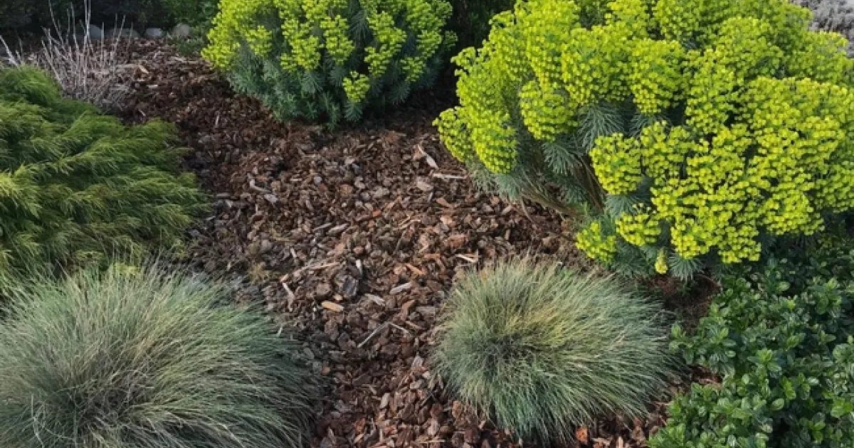 In Spring of 2016, after multiple years of drought, my husband and I decided it was time for a change in our front yard. Because of the watering restrictions, the lawn was brown, weed infested and basically dead. We were ready to remove the lawn and replace it with drought tolerant plants. The soil in between the plants was covered with weed fabric and several inches of brown bark mulch.