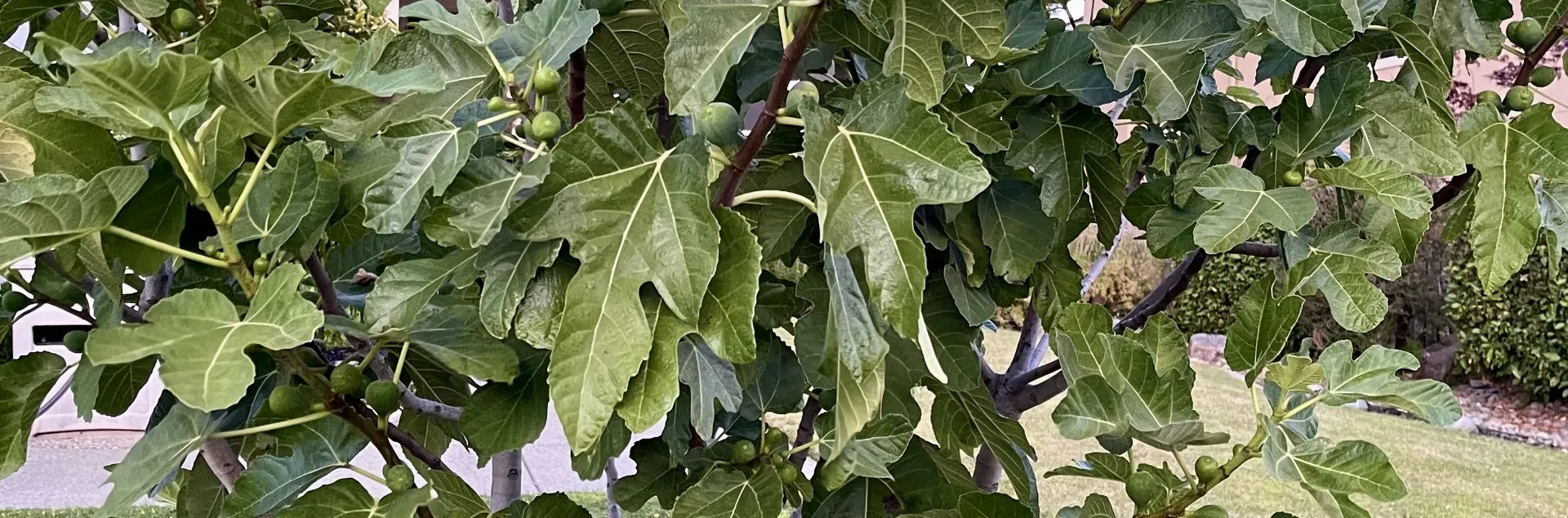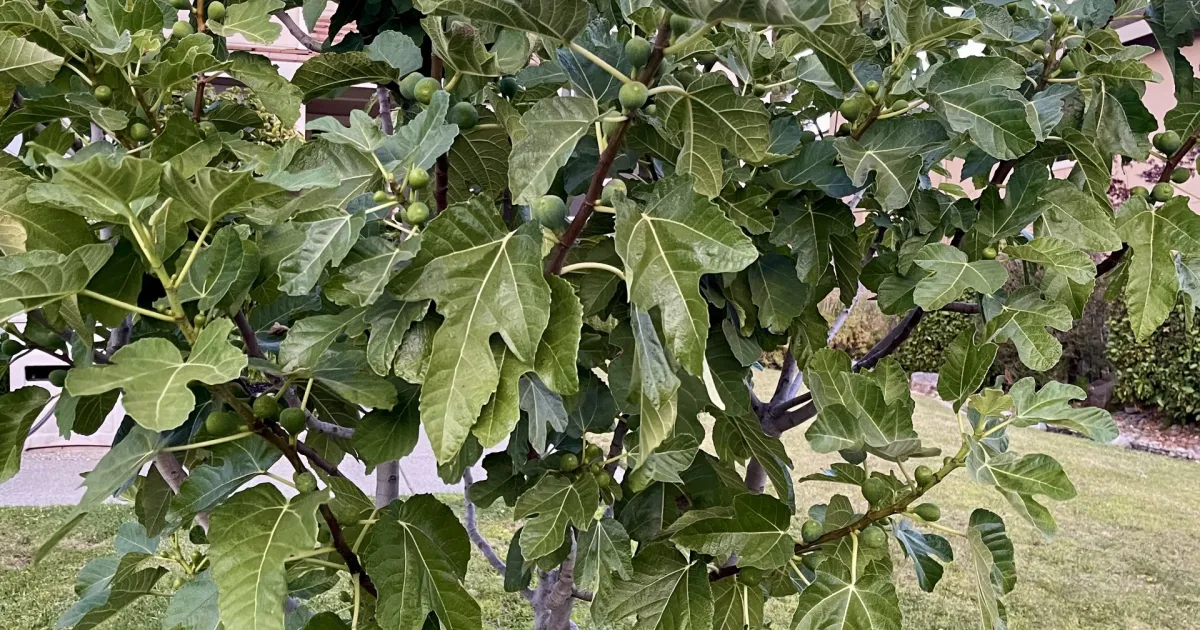 Some years ago, we cut down a tree in our front yard planted by the developer, which eventually tilted over our driveway. I decided to plant a green fig directly in its place. The tree removal company only ground the stump down maybe 18 inches, and I did worry that the fig roots would not be happy. Thankfully, this did not appear to be an issue. A green fig was chosen because we already get to eat excellent purple figs, and also to try and avoid too much fruit loss from snacking birds. Supposedly, the ripened yellow-green color would fool them.