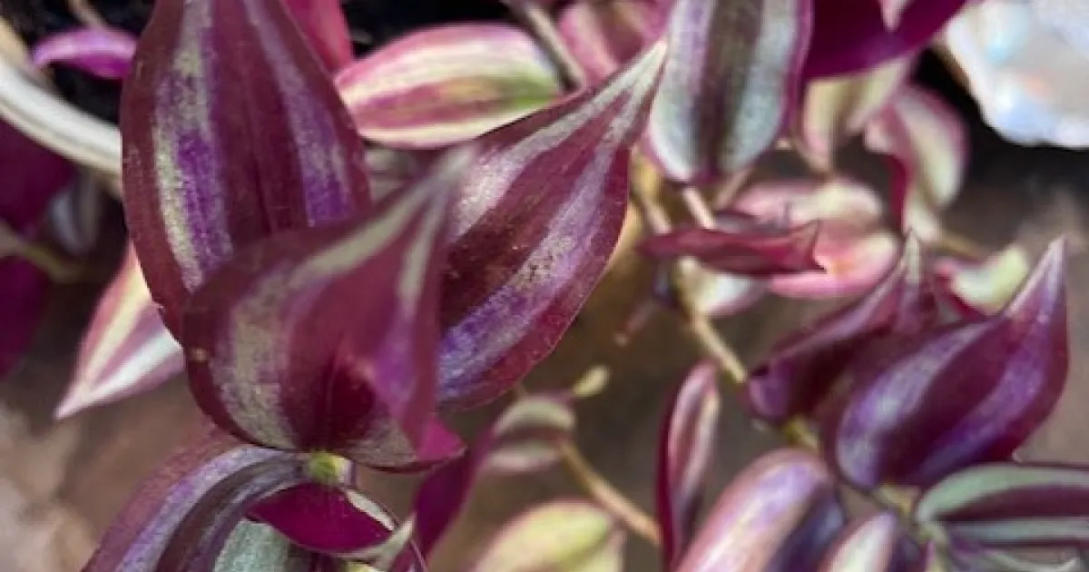 Thank goodness then, for Tradescantia! A friend has these trailing beauties growing all over her yard and she gave me cuttings. The pink, burgundy, light green and silvery coloring combination is so eye-catching! There are many varieties of Tradescantia, which is the correct name for this lovely plant. My variety appears to be 'Zebrina'. The first picture is of the original cuttings, and the second pic is of new cuttings. Earlier this year, I found a light pink colored Tradescantia called 'Bubblegum' at a Fort Bragg Nursery. Unfortunately it did not thrive in my yard under a Japanese maple. I thought it was sheltered enough but maybe not, or perhaps there was just insufficient water when we were away on vacation. I managed to take 3 tiny cuttings (not shown) from the remains, and they are now starting to grow. Fingers crossed, and giving it a lot of attention.