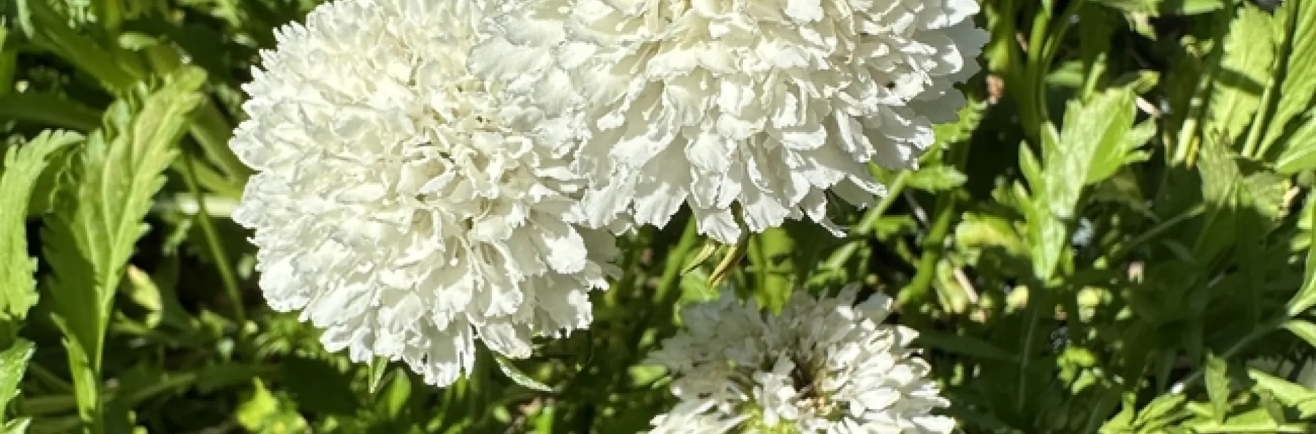 I planted Scabiosa atropurpurea to use as a cut flower.  The approximately 1-1.5” flowers resemble miniature pincushions on 18” stems.  The flowers range from white to purple with colors in between, such as pink and lavender.  In my yard, the plant blooms constantly from spring to late summer and attracts pollinators.  It is low maintenance and grows to approximately 3' tall by 2' wide.  It propagates by seeds.  The flowers are a nice airy addition to a bouquet.