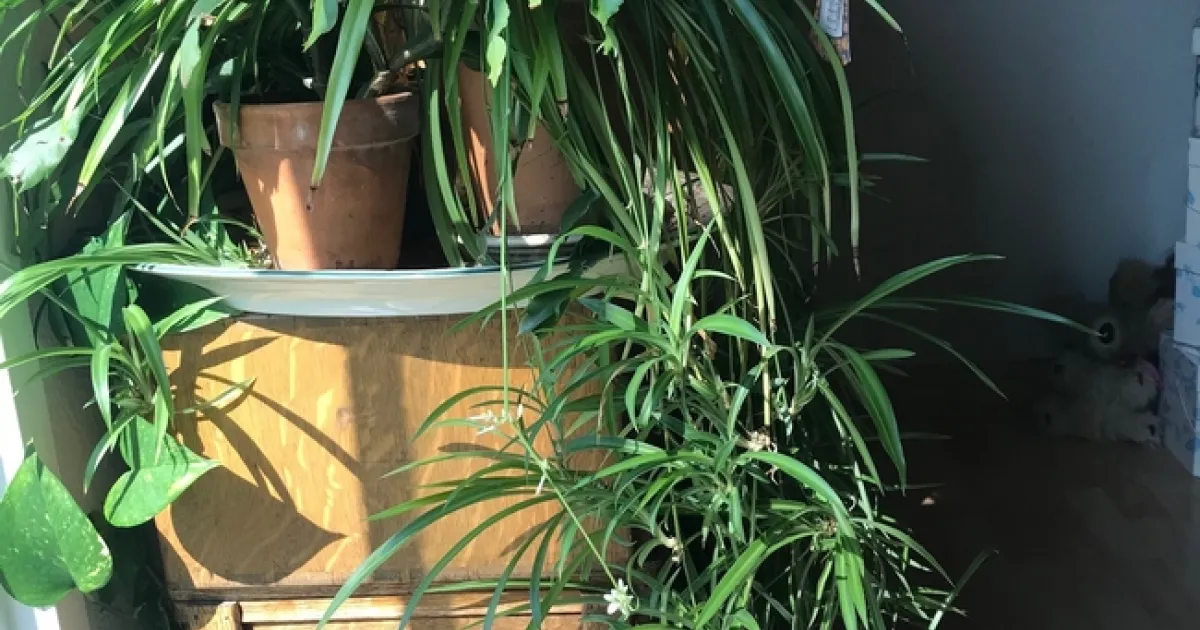 Spider plants like bright indirect light if grown as houseplants and partial shade if grown outside. They like regular water, but like the soil to dry out a bit between waterings. A bonus to growing this plant inside is that it is one of the plants that can improve indoor air quality by absorbing several chemicals including carbon monoxide according to MG Susan Mahr from the University of Wisconsin Master Gardener Program.