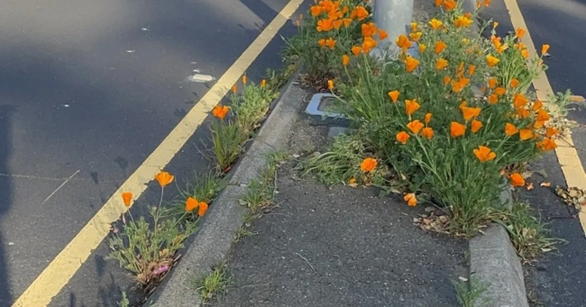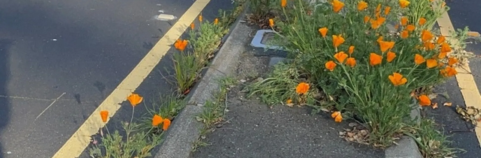 Poppies are easy to grow and are drought tolerant.  They will grow almost anywhere where they can get at least 6 hours of sun.  They need little water and germinate in the fall after the first rains or in the spring when the soil warms. They will self-germinate if they find the soil and other conditions favorable.   You may have several years of golden poppy heaven before you have to re-seed.  Ideally, they prefer sandy well drained soil but as you can see, they are pretty good in almost any soil.  They flower February through September.
