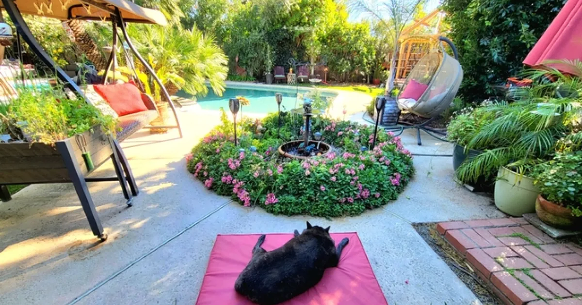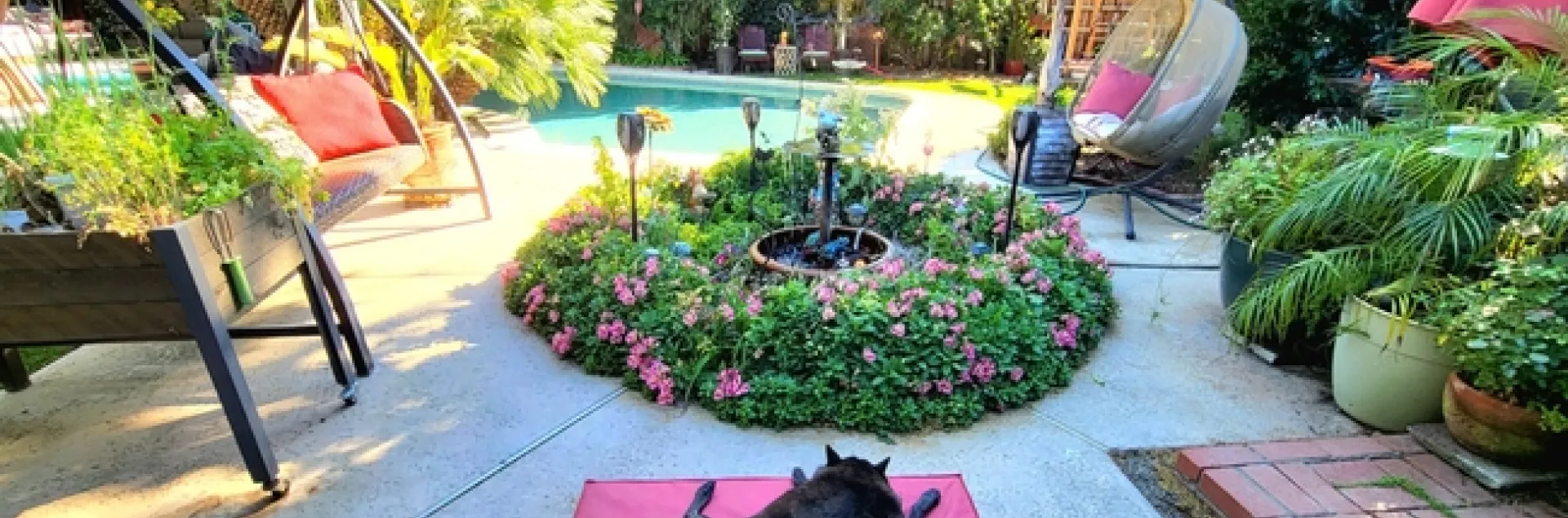 While taking a break with Suzy Q, the Zen Master, I spotted this friendly pollinator that was also enjoying the garden, a ladybug sitting on top of a bird statue in the fountain. A good day, indeed!