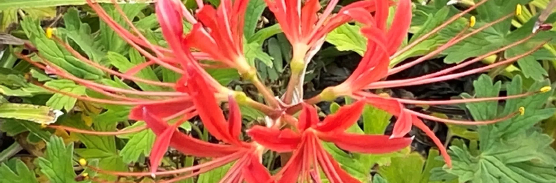 Red Spider Lily bloom closeup. photos by David Bellamy