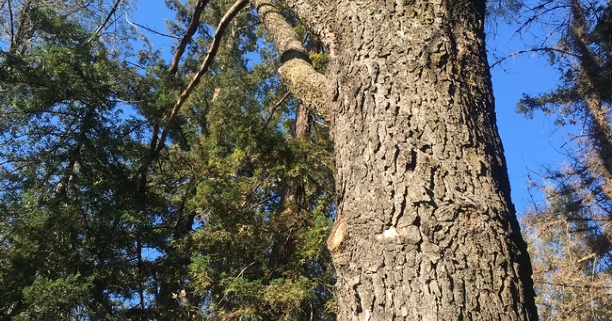 One of the reasons this tree is so rare is that its seed dispersal system isn't all that efficient. The male cones grow upright on the bottom of the tree and the female cones on the upper part of the tree. The male cones need a good crosswind to float the pollen from the next tree. The scales on these large cones stay open until the seeds are pollinated. They then close and turn downward. When the seeds are mature, the scales open very slowly and the seeds fall down. The seeds don't all come tumbling out at the same time. The large, heavy cones can stay on the tree for 15 years! Seeds can be released slowly from 15 months after pollination through the time they remain in the cone on the tree. True for all pine trees, it takes 15 months from pollination to fertilization. Blue jays have been found to be helpful in seed dispersal.
