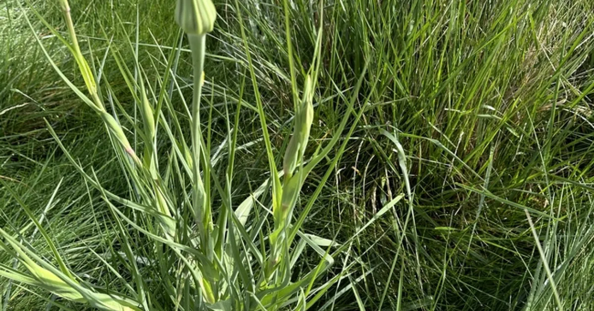 Salsify starts with a basal rosette of gray-green, grass-like foliage. It has hollow, milky stems and a deep, 1 to 3-foot tap root. It will develop 5 to 6 flowers per plant and grow 2 to 4 feet tall.