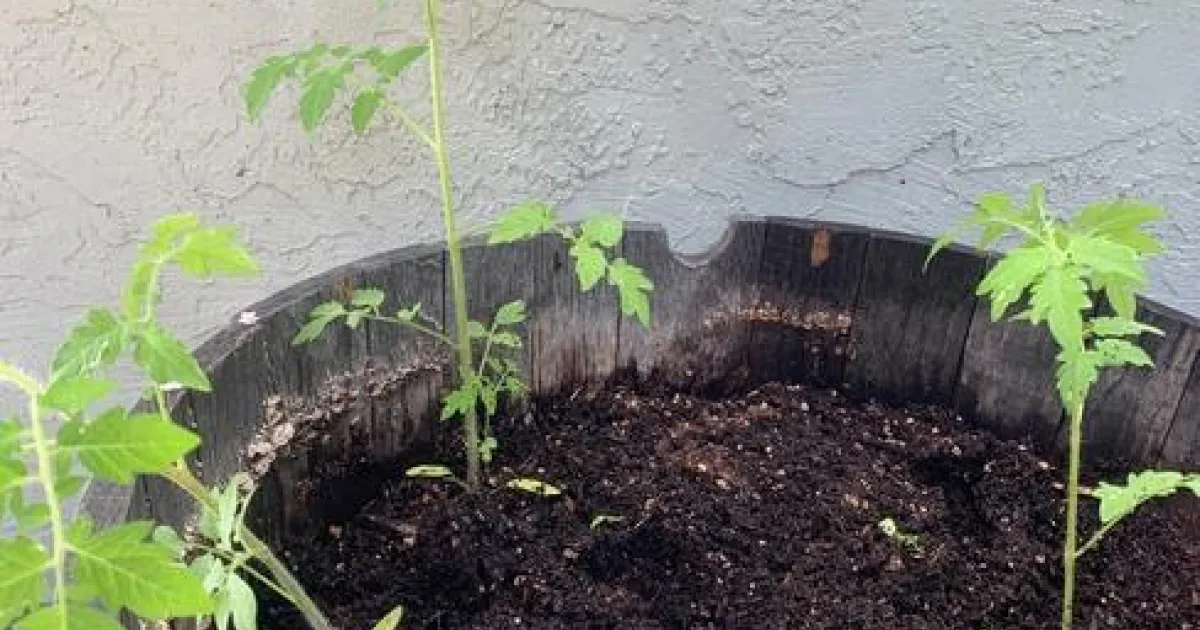 October 9. Three tiny green tomatoes. The barrels are in an area that isn't getting much sun anymore so growth has slowed considerably. They stayed green through October.