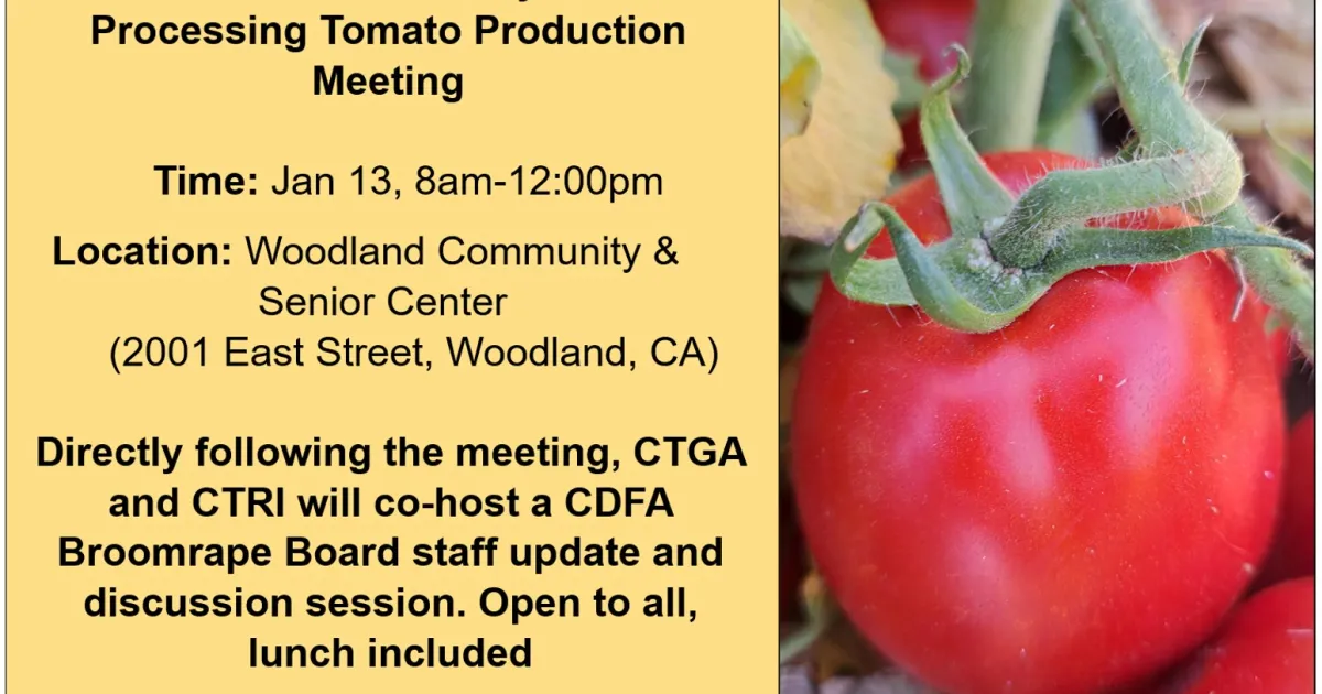 Join us for the South Sacramento Valley Annual Processing Tomato Production Meeting!
