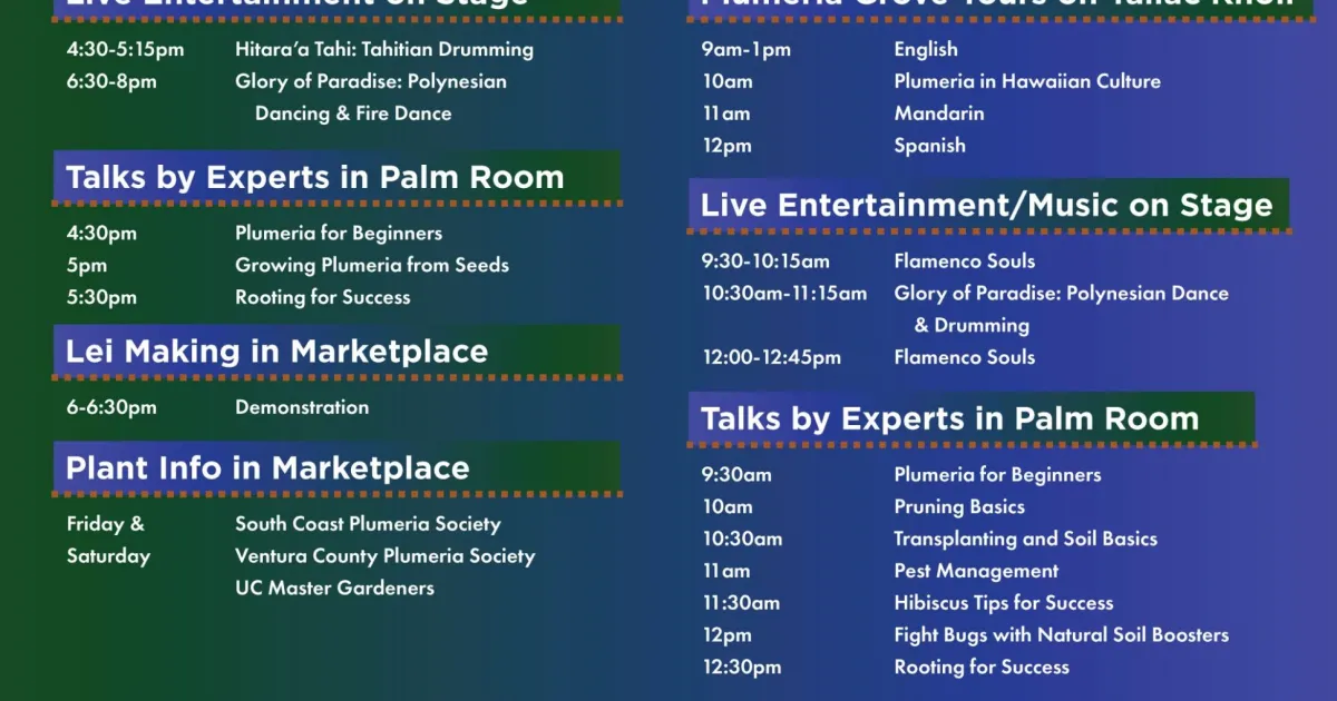 LA County Master Gardeners will host a booth at the Plumeria Festival at the LA County Arboretum on Friday, 7/18 (4pm to 8 pm) and on Saturday, 7/19 (9 am to 2 pm). They will be answering gardening & horticulture questions and providing general gardening information.