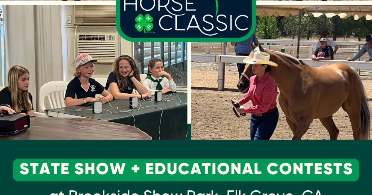 Get ready to compete at the California 4-H Horse Classic! The Educational Contests will be held July 16 and 17. See the Resource Center for study resources. The top placing Senior teams or individuals qualify to represent California 4-H at the National 4-H Horse Classic at the Western National Roundup in Denver, CO. This year, the horse show is adding Novice classes to Ranch. Registration due July 7.