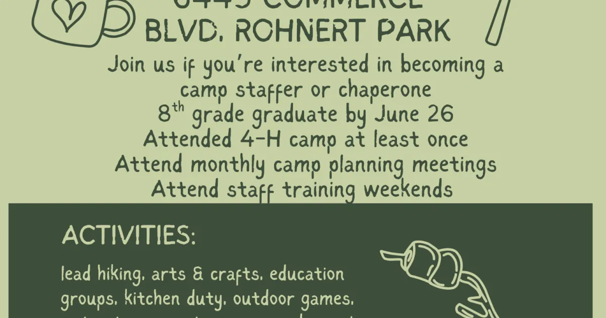 If you have questions about camp, please call the 4-H Office at 707-565-2681 or shelley.ferina@sonomacounty.gov