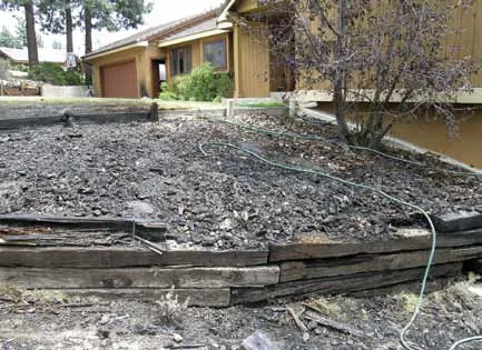 Maintaining noncombustible, ignition–resistant areas immediately adjacent to structures (within 5 ft) is particularly important. Embers often accumulate in these areas, providing an ignition source for combustible materials. Further away from the structure, mulch-covered areas should be separated by noncombustible materials. This is to prevent the mulch, if ignited, from spreading the fire in a continuous manner.