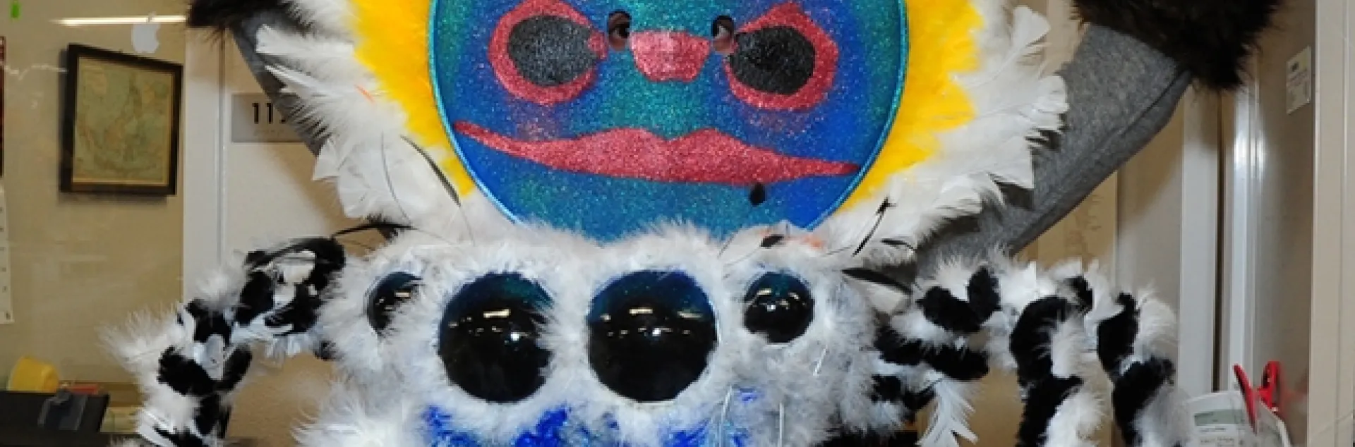 The best costume at the Bohart Musuem's recent Halloween party was of a peacock jumping spider, designed, created and worn by UC Davis entomology undergraduate student Wade Spencer.