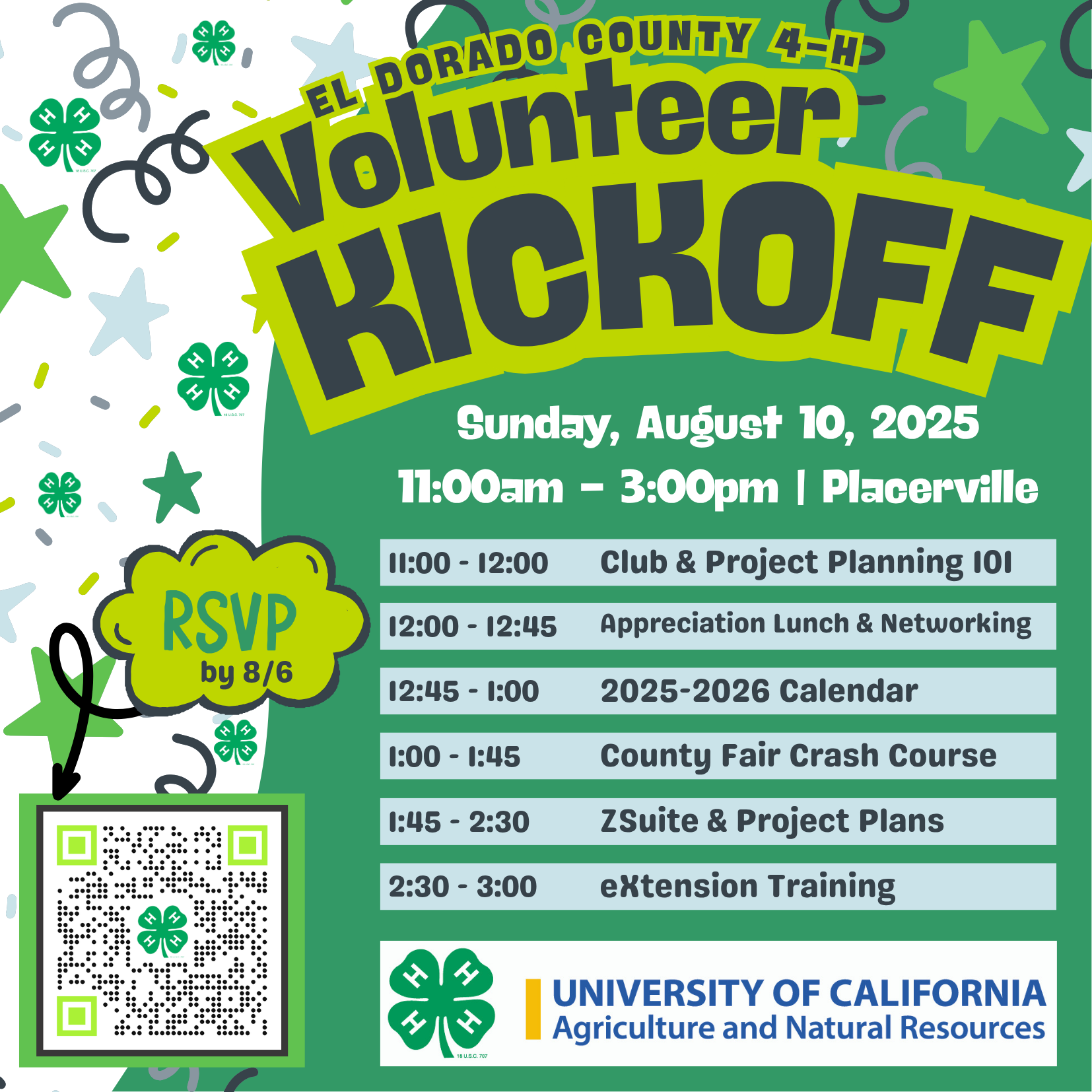 Join us for a volunteer appreciation lunch, networking, program planning, and more! Learn everything you need to know about volunteering with the 4-H Youth Development Program in El Dorado County.