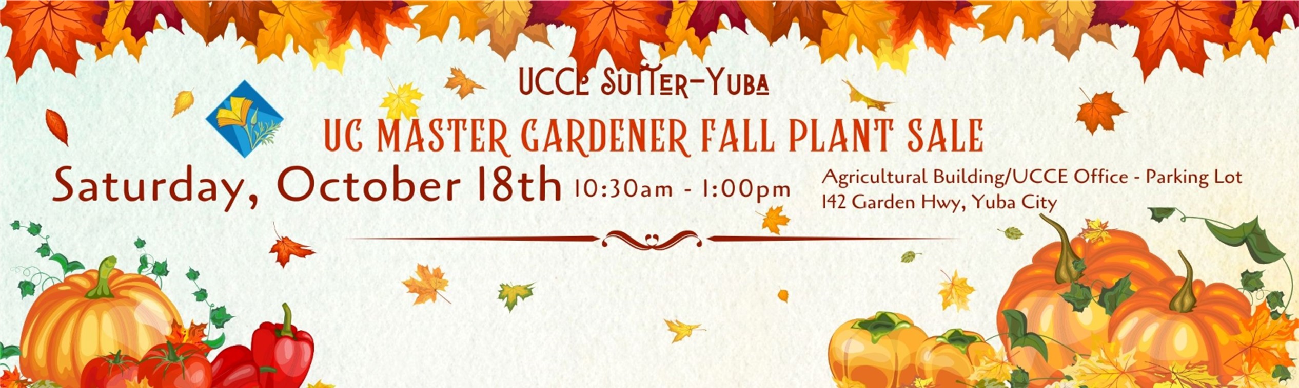 The UC Master Gardeners of Sutter-Yuba Counties invite the community to their annual Fall Plant Sale on Saturday, October 18, 2025, from 9:30 a.m. to 1:00 p.m. at the UCCE Office Parking Lot, 142 Garden Highway, Yuba City.