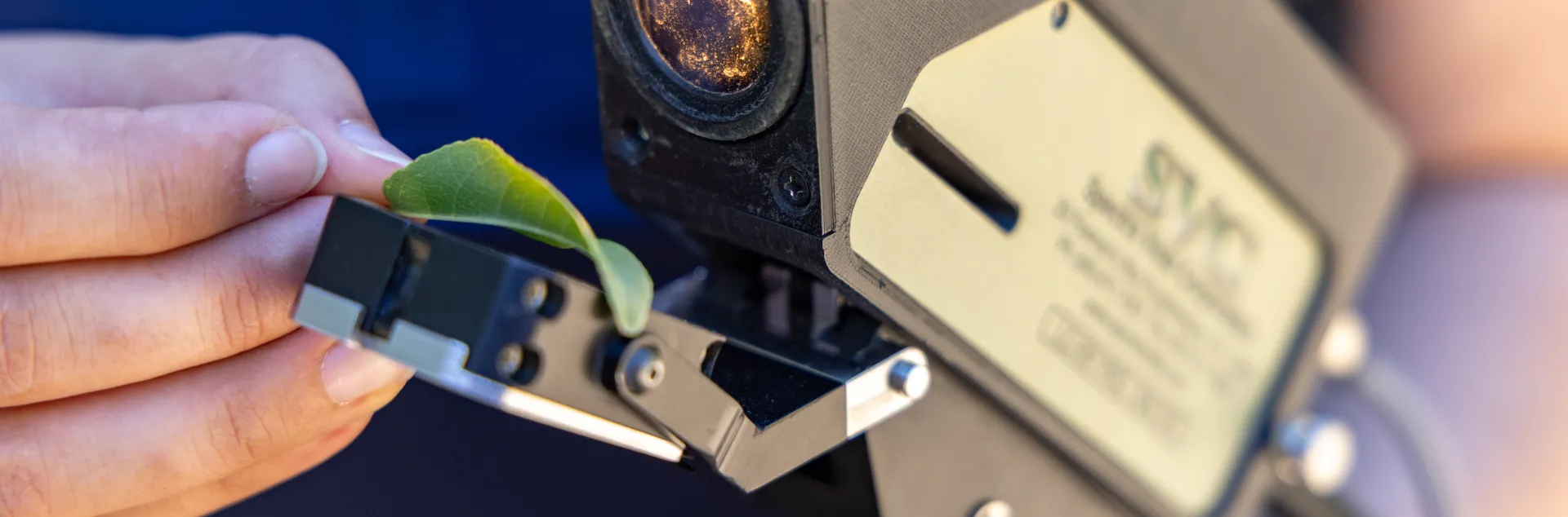 The Leaf Monitor tool uses a handheld spectrometer to measure leaf reflectance beyond the range of light visible to the human eye.
