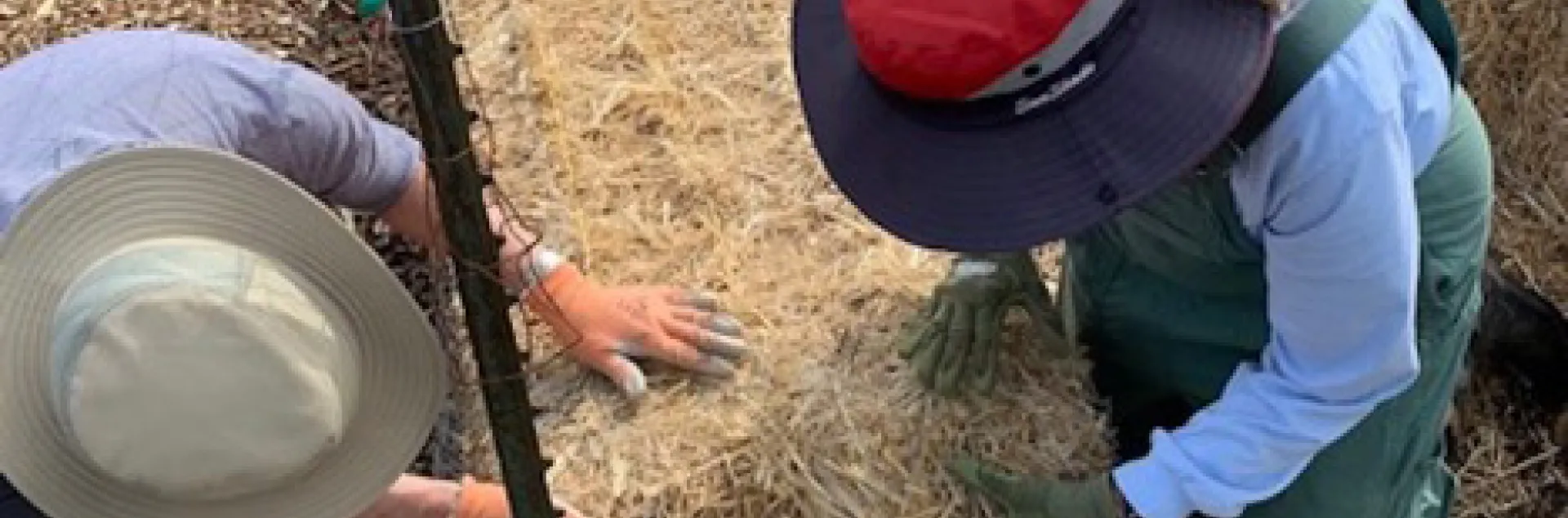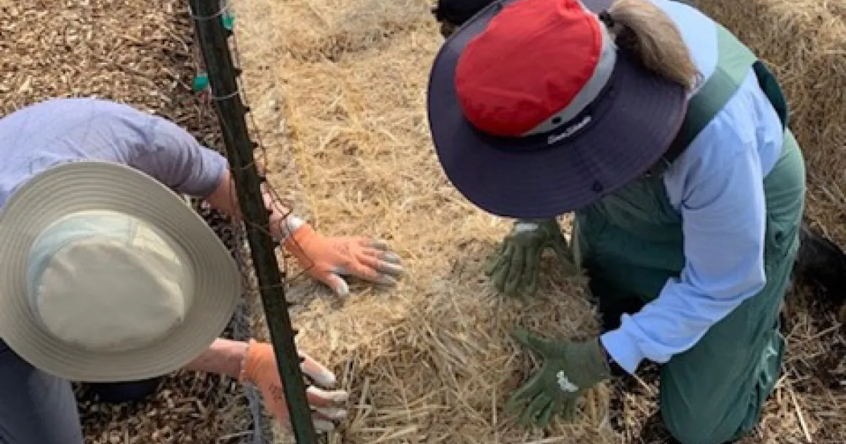 The addition of rice straw bales expands the available planting space and the opportunity to experiment with different growing conditions in the edible garden. The straw bales serve as a type of raised bed, but they require seasoning with water and amendments before they can support plant growth. The bales break down during the growing season and need to be replaced each year, so installing and preparing the straw bales kept the garden volunteers busy in March. Detailed information on the use of straw bales can be found at https://anrcatalog.ucanr.edu/pdf/8559.pdf or on our YouTube video below.