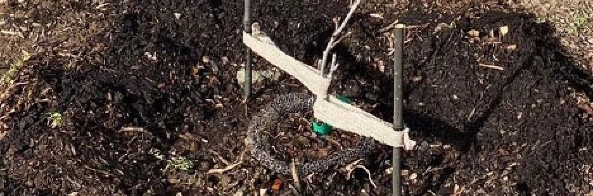 Stakes can protect and support the trunk during the first year or so. Stakes should be placed so the trunks can flex some with the wind in order to develop strength. See staking trees for more information.