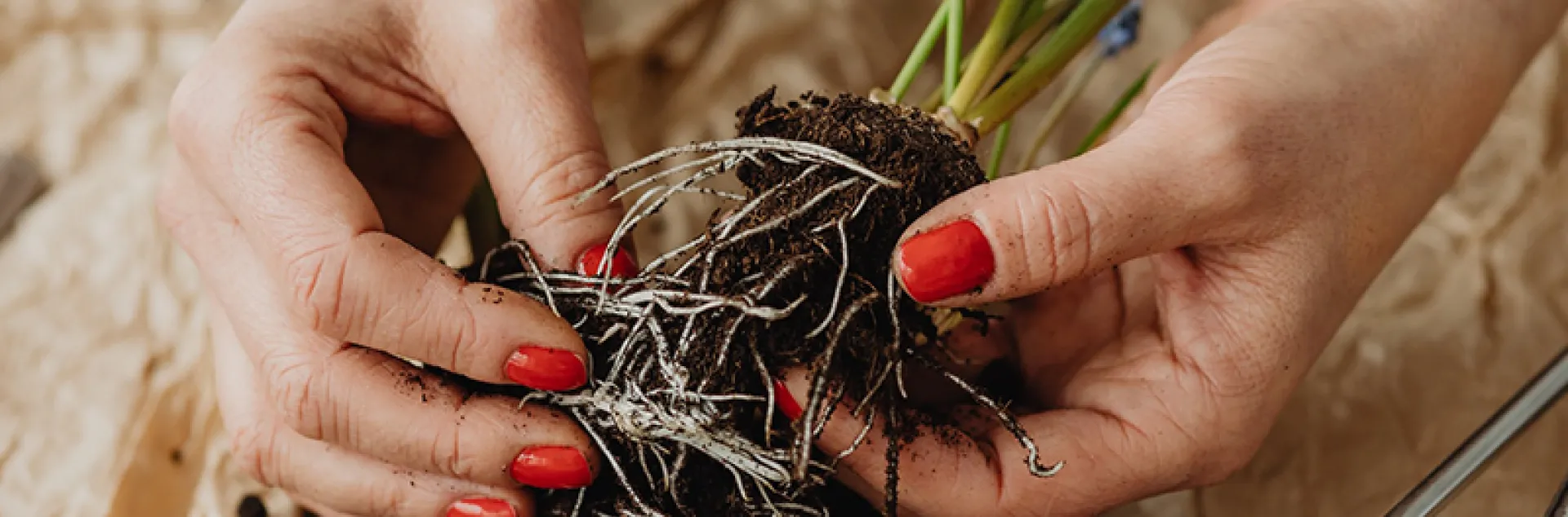 • Push the two handles toward each other, and the roots should separate.