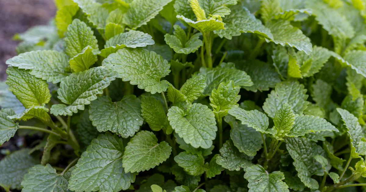 Lemon balm is a fragrant perennial herb that grows 2 to 3 feet tall and is loved by bees. To avoid aggressive spread, pinch-tip stems or grow in a container. Deer avoid lemon balm.