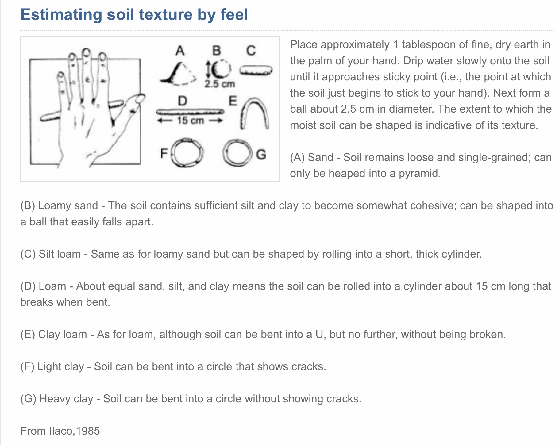 • Estimating soil texture by feel – follow the steps below then click here to evaluate your results