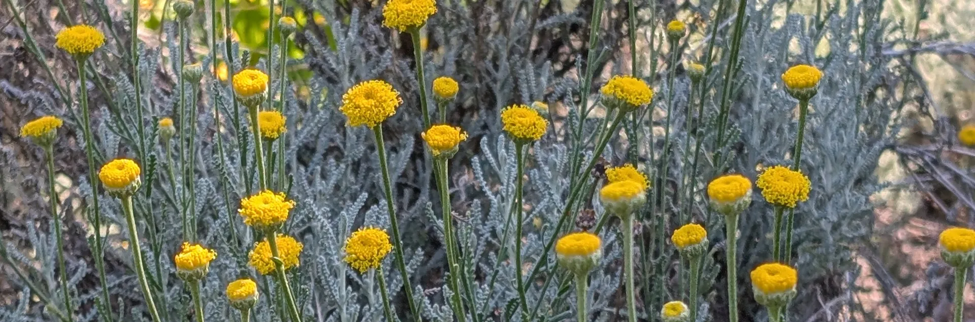 • Santolina thrives in Sonoma County’s rainy winters and hot, dry summers, but it tends to be short-lived and often needs to be replaced after 5 or 6 years.